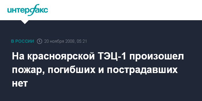 Красноярск. 20 ноября. ИНТЕРФАКС-СИБИРЬ - Красноярские спасатели в течении пары часов ликвидировали возгорание на территории городской ТЭЦ- 1, при пожаре никто не пострадал.