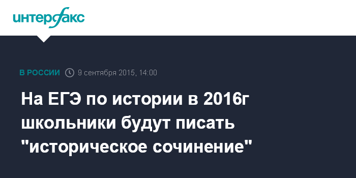 На ЕГЭ по истории в 2016г школьники будут писать "историческое сочинение"