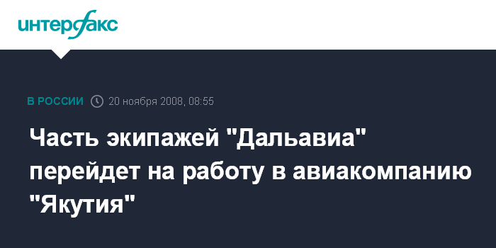 "Администрация хабаровской авиакомпании обратилась к нам с просьбой рассмотреть возможность трудоустройства членов экипажей, - сказал А.Тарасов. - Представители "Якутии" в ответ на эту просьбу прибыли в Хабаровск с целью отбора пилотов для 2 экипажей самолетов Ту-154, пяти экипажей Ан-24 и двух экипажей Ан-140 (самолет, приходящий на смену Ан-24 - "ИФ")".