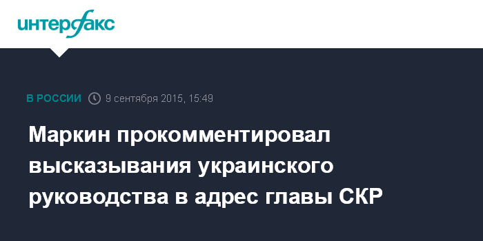 Москва. 9 сентября. INTERFAX.RU - Официальный представитель СКР Владимир Маркин прокомментировал нелицеприятные высказывания представителей украинского руководства в адрес председателя СКР Александра Бастрыкина, прозвучавшие после заявления о возможной причастности премьер-министра Украины Арсения Яценюка к событиям в Чечне в 90-е годы.