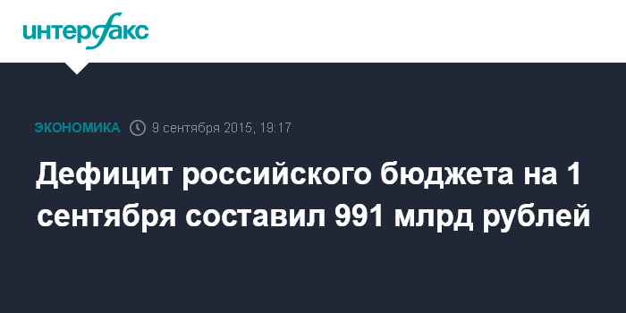 Дефицит российского бюджета на 1 сентября составил 991 млрд рублей