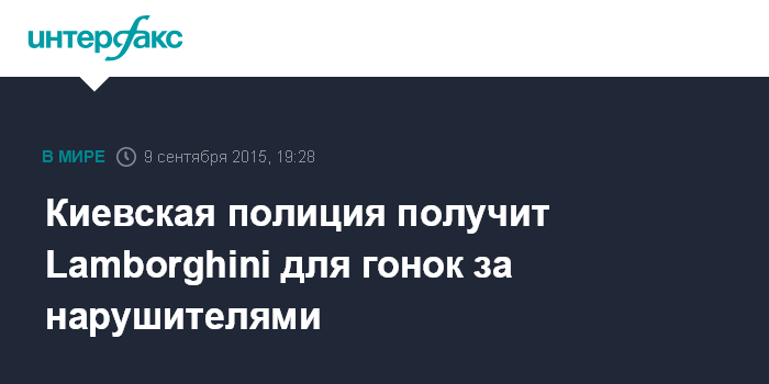 Москва. 9 сентября. INTERFAX.RU - Патрульная полиция Киева в ближайшее время получит спортивный автомобиль Lamborghini для преследования нарушителей на больших скоростях.