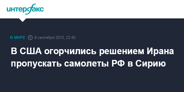 "Сообщения, которые мы видели - русские заявили, что они имеют право пролета со стороны Ирана - являются, вы знаете, разочаровывающими, но не неожиданными, принимая во внимание историю поддержки Ираном режима Асада (президента Сирии Башара Асада - ИФ)", - сказал он.