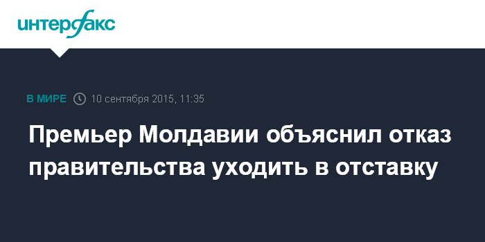 Москва. 10 сентября. INTERFAX.RU - Премьер-министр Молдавии Валерий Стрелец в четверг на встрече с представителями так называемого Совета Великого Национального собрания заявил, что правительство не будет подавать в отставку.