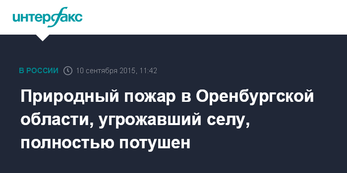 Москва. 10 сентября. INTERFAX.RU - Очаг природного пожара вблизи села Горьковское Оренбургской области ликвидирован рано утром в четверг, сообщили "Интерфаксу" в пресс-службе ГУ МЧС по региону.