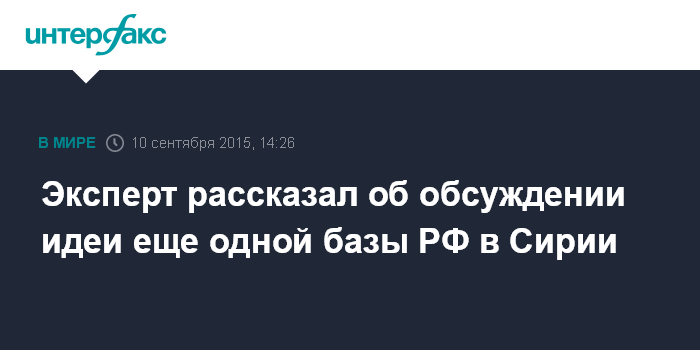 Москва. 10 сентября. INTERFAX.RU - Сирия предлагала Москве создать в Латакии пункт обслуживания российских ВМС по аналогу уже существующего в Тартусе или даже военную базу, однако на данный момент вопрос находится на стадии обсуждения, говорит известный российский эксперт по Ближнему Востоку.