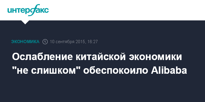 Москва. 10 сентября. INTERFAX.RU – Руководство Alibaba Group, китайского гиганта сферы интернет-торговли, "не слишком обеспокоено" потенциальными последствиями ослабления экономического подъема в КНР для ее ключевого бизнеса, заявил исполнительный вице-председатель компании Джо Цай в интервью MarketWatch.