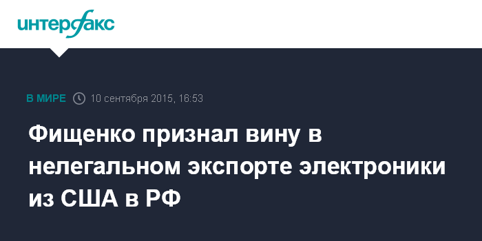 Москва. 10 сентября. INTERFAX.RU - Россиянин Александр Фищенко, имеющий также американское гражданство, признал вину в незаконных поставках микроэлектроники из США в РФ, сообщил в четверг сайт Восточного округа Нью-Йорка.