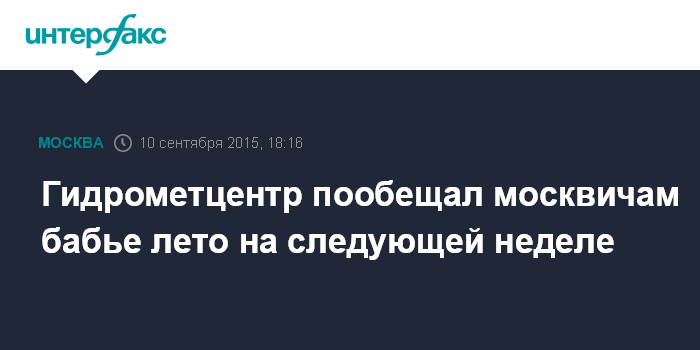 Москва. 10 сентября. INTERFAX.RU - Бабье лето придет в Московский регион в воскресенье и продлится несколько дней, сообщил "Интерфаксу" в четверг директор Гидрометцентра Роман Вильфанд.