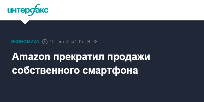 Москва. 10 сентября. INTERFAX.RU - Американский интернет-ритейлер Amazon объявил о прекращении продаж разработанного компанией смартфона Fire Phone на фоне слабого спроса на этот продукт.