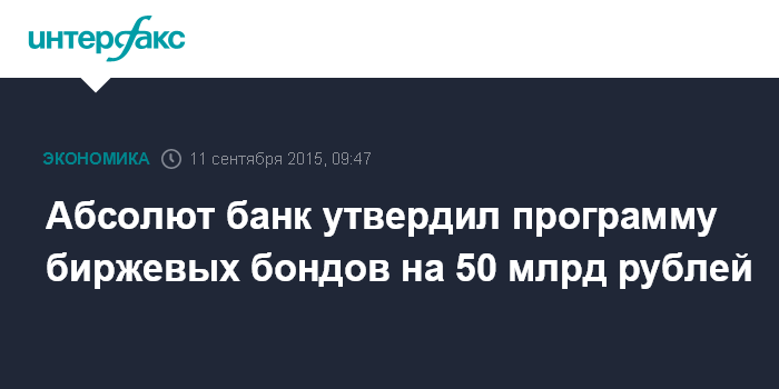 Абсолют банк утвердил программу биржевых бондов на 50 млрд рублей