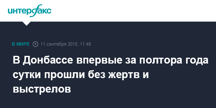 Москва. 11 сентября. INTERFAX.RU - Президент Украины Петр Порошенко заявляет, что прошедшие сутки стали первым днем за полтора года, когда не прозвучало ни одного выстрела и не было ни одной жертвы на востоке страны.