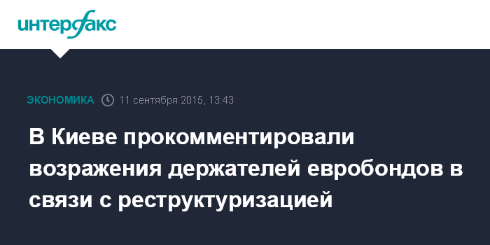 Группа держателей еврооблигаций Украины с наиболее коротким сроком обращения считает невыгодными для себя условия реструктуризации коммерческого долга страны и требует их пересмотра. Группа в письме другим держателям таких же ценных бумаг указывает, что согласованные Минфином Украины и специальным комитетом кредиторов условия предполагают более длительную отсрочку погашения их долгов, чем каких-либо других реструктуризируемых еврооблигаций.