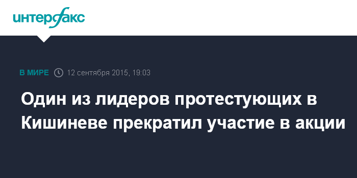 Москва. 12 сентября. INTERFAX.RU - Один из лидеров протестующих в центре Кишинева граждан, председатель политической партии "Демократия - дома" Василий Костюк объявил в субботу о прекращении своего участия в протестах.