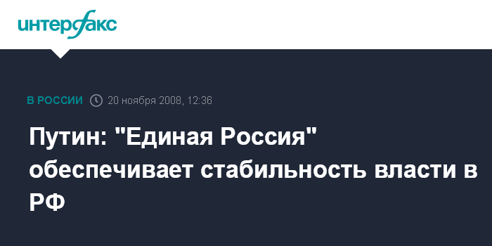 Москва. 20 ноября. INTERFAX.RU - Председатель "Единой России", премьер РФ Владимир Путин заявил, что единороссам удалось обеспечить преемственность и стабильность власти в России.