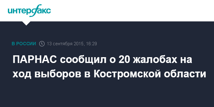 Москва. 13 сентября. INTERFAX.RU - Оппозиционная партия РПР-ПАРНАС подала 20 жалоб о нарушениях на выборах в Костромской области, сообщает пресс-служба партии.
