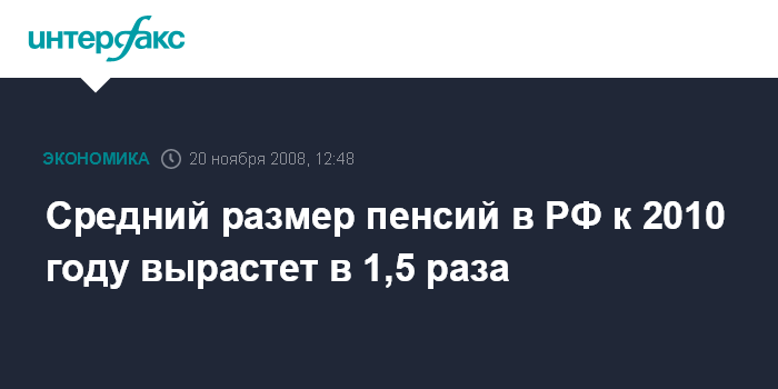 Москва. 20 ноября. INTERFAX.RU - Лидер "Единой России", премьер-министр Владимир Путин заявил, что в 2010 г. средний размер пенсий будет в полтора раза выше уровня 2008 года.