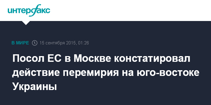 Москва. 15 сентября. INTERFAX.RU - Глава представительства ЕС в Москве Вигаудас Ушацкас констатировал соблюдение режима прекращения огня на юго-востоке Украины.
