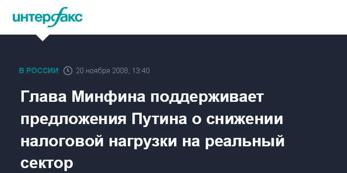 Москва. 20 ноября. INTERFAX.RU - Вице-премьер, министр финансов Алексей Кудрин считает вполне своевременными озвученные премьером Владимиром Путиным предложения по снижению налоговой нагрузки на реальный сектор экономики.