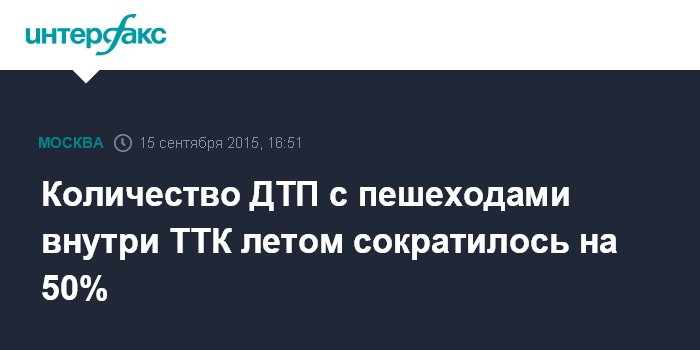 "В результате внедрения Комплексной схемы организации дорожного движения внутри Третьего транспортного кольца количество ДТП с участием пешеходов летом 2015 года, по сравнению с аналогичным периодом прошлого года, сократилось на 50%, а с пострадавшими - на 31%", - цитирует пресс-служба заместителя мэра столицы Максима Ликсутова.