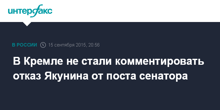 В Кремле не стали комментировать отказ Якунина от поста сенатора