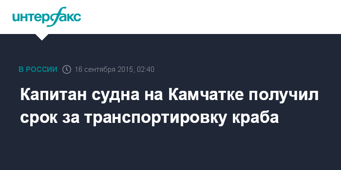 Москва. 16 сентября. INTERFAX.RU - Суд на Камчатке признал капитана иностранного судна "Вант" (Республика Панама), виновным в незаконной транспортировке более 3,6 тысяч особей краба, сообщает в среду пресс-служба прокуратуры Камчатского края.