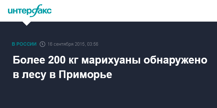 Москва. 16 сентября. INTERFAX.RU - Сотрудники наркоконтроля в Приморье в ходе проведения операции "Мак-2015" обнаружили крупную партию марихуаны в лесном массиве Яковлевского района Приморья.