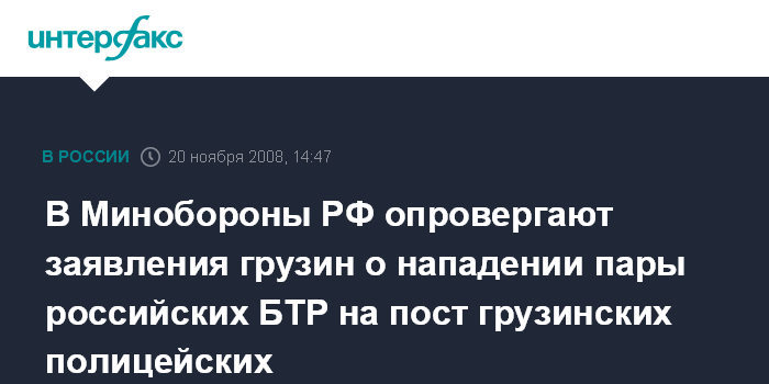 В Минобороны РФ опровергают заявления грузин о нападении пары российских БТР на пост грузинских полицейских