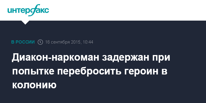 Диакон-наркоман задержан при попытке перебросить героин в колонию