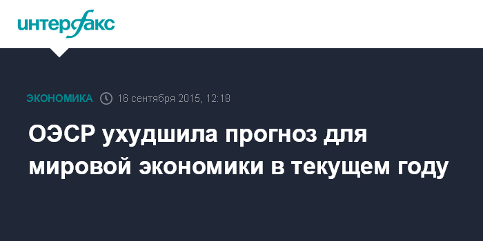 Москва. 16 сентября. INTERFAX.RU – Организация экономического сотрудничества и развития (ОЭСР) ухудшила прогноз роста мировой экономики на ближайшие два года.