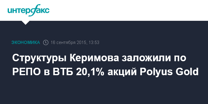 Структуры Керимова заложили по РЕПО в ВТБ 20,1% акций Polyus Gold