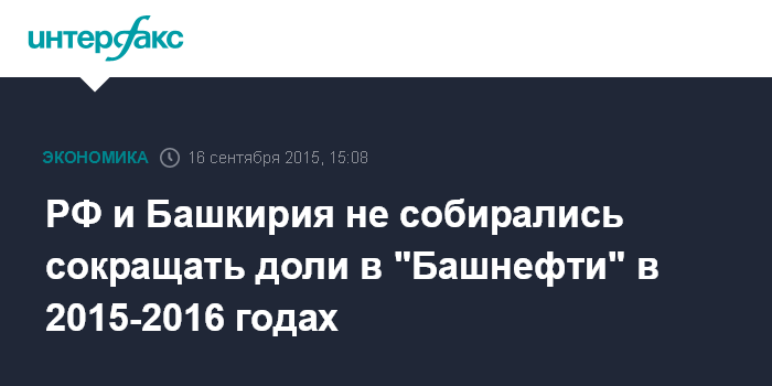 РФ и Башкирия не собирались сокращать доли в "Башнефти" в 2015-2016 годах