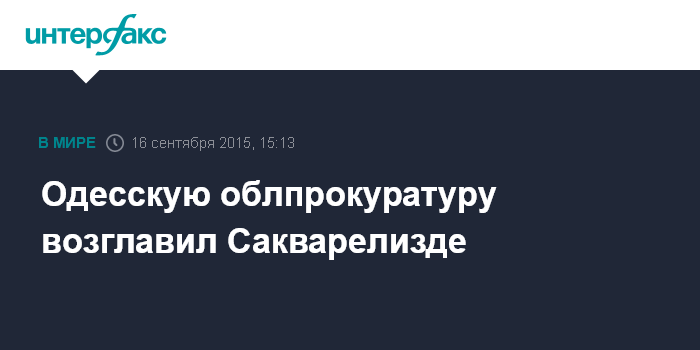 "Шокин сообщил, что его приказом Сакварелидзе назначен на должность заместителя генерального прокурора Украины - прокурора Одесской области. Также, по его словам, Сакварелидзе будет курировать работу отдела процессуального руководства по уголовным производствам в отношении работников прокуратуры Генеральной прокуратуры Украины", - говорится в сообщении, обнародованном в среду на сайте Генпрокуратуры.