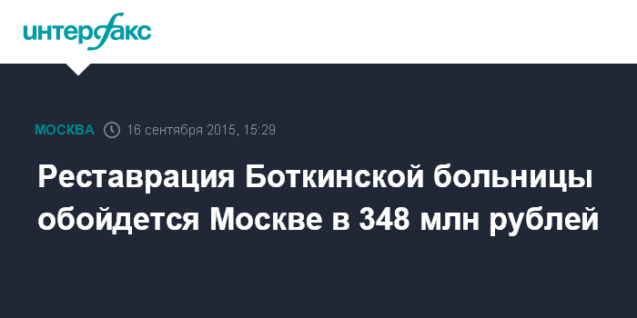 Реставрация Боткинской больницы обойдется Москве в 348 млн рублей