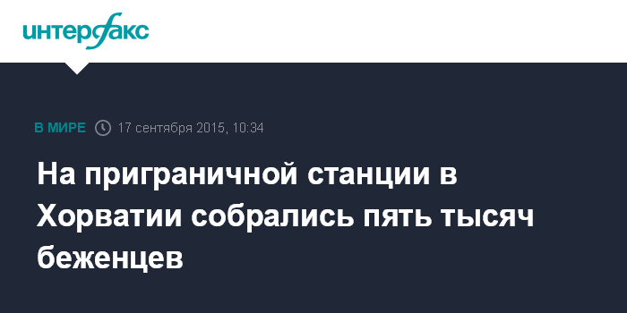 Москва. 17 сентября. INTERFAX.RU - От пяти до шести тысячи беженцев скопились в четверг утром на железнодорожной станции хорватского города Товарник, сообщает хорватская телерадиокомпания ХРТ.