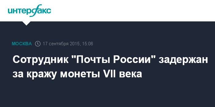 Сотрудник "Почты России" задержан за кражу монеты VII века