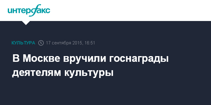 Москва. 17 сентября. INTERFAX.RU - Министр культуры РФ Владимир Мединский вручил государственные награды деятелям культуры и искусства.