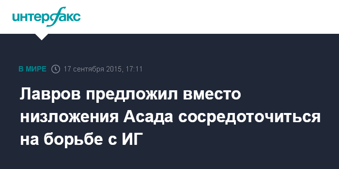 Лавров предложил вместо низложения Асада сосредоточиться на борьбе с ИГ