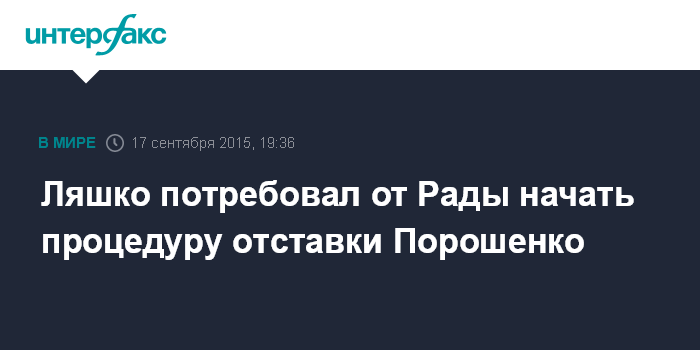 Москва. 17 сентября. INTERFAX.RU - Лидер Радикальной партии Олег Ляшко заявил о совершении преступлений, в том числе коррупционных, со стороны президента Украины Петра Порошенко, и потребовал от Верховной рады принять закон об импичменте президента и начать эту процедуру.