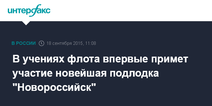 Москва. 18 сентября. INTERFAX.RU - Новейшая дизельная подводная лодка "Новороссийск" впервые примет участие в учениях, говорится в сообщении пресс-службы Черноморского флота.