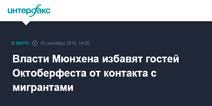 Власти Мюнхена избавят гостей Октоберфеста от контакта с мигрантами