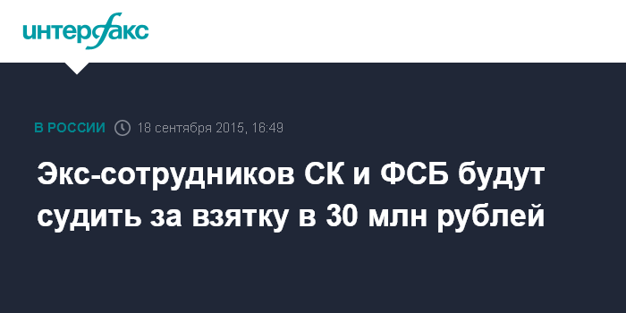 Экс-сотрудников СК и ФСБ будут судить за взятку в 30 млн рублей
