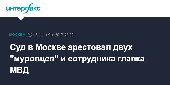 Москва. 18 сентября. INTERFAX.RU - Пресненский суд арестовал задержанных накануне оперуполномоченных уголовного розыска ГУ МВД по Москве Дмитрия Алферова, Станислава Максимова, а также сотрудника главка МВД Сергея Абросенко по подозрению в фальсификации доказательств и превышении должностных полномочий.