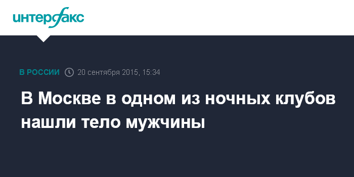 "20 сентября 2015 года примерно в 02 часа 30 минут на лестничном пролете одного из ночных клубов, расположенного по улице Родчельской в городе Москве, обнаружено тело 34-летнего мужчины с телесными повреждениями, характерными для падения с высоты", - рассказали в пресс-службе.