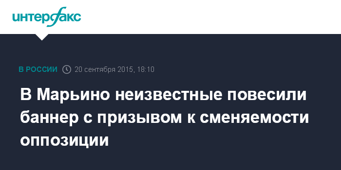Москва. 20 сентября. INTERFAX.RU - С крыши многоэтажки рядом с местом проведения митинга оппозиции в Марьино свесили баннер "За сменяемость оппозиции".