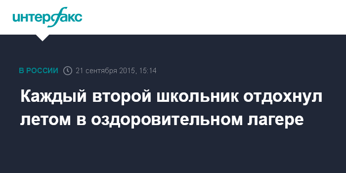 Москва. 21 сентября. INTERFAX.RU - В российских детских оздоровительных лагерях в 2015 году отдохнули 7 млн детей и подростков, то есть каждый второй школьник, сообщила вице-премьер Ольга Голодец.