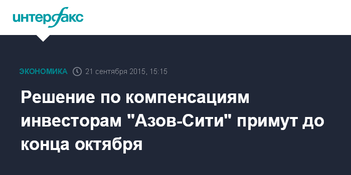 Решение по компенсациям инвесторам "Азов-Сити" примут до конца октября