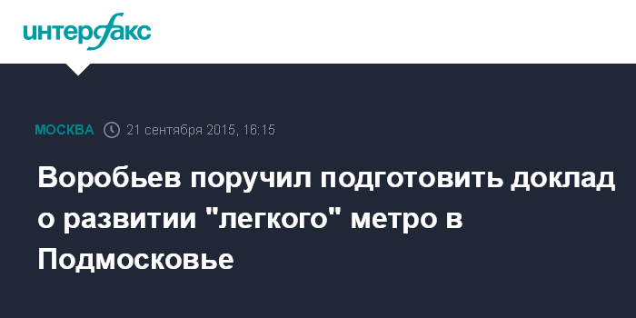 "Сложно рассчитывать, что подземное метро будет дальше заходить в Подмосковье. Я прошу подготовить доклад о развитии концепции "легкого" метро и постоянно информировать жителей о ходе работ, связанных с прокладкой трассы. Этот очень важный проект мы должны реализовать", - приводятся в сообщении слова Воробьева, сказанные им на совещании.
