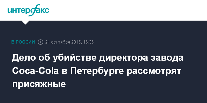 Дело об убийстве директора завода Coca-Cola в Петербурге рассмотрят присяжные