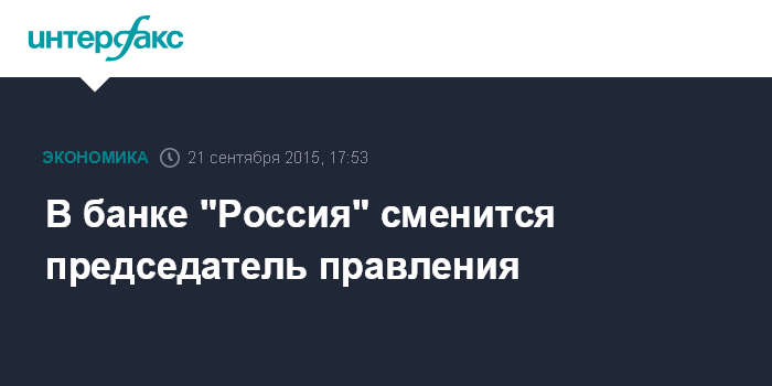 В банке "Россия" сменится председатель правления